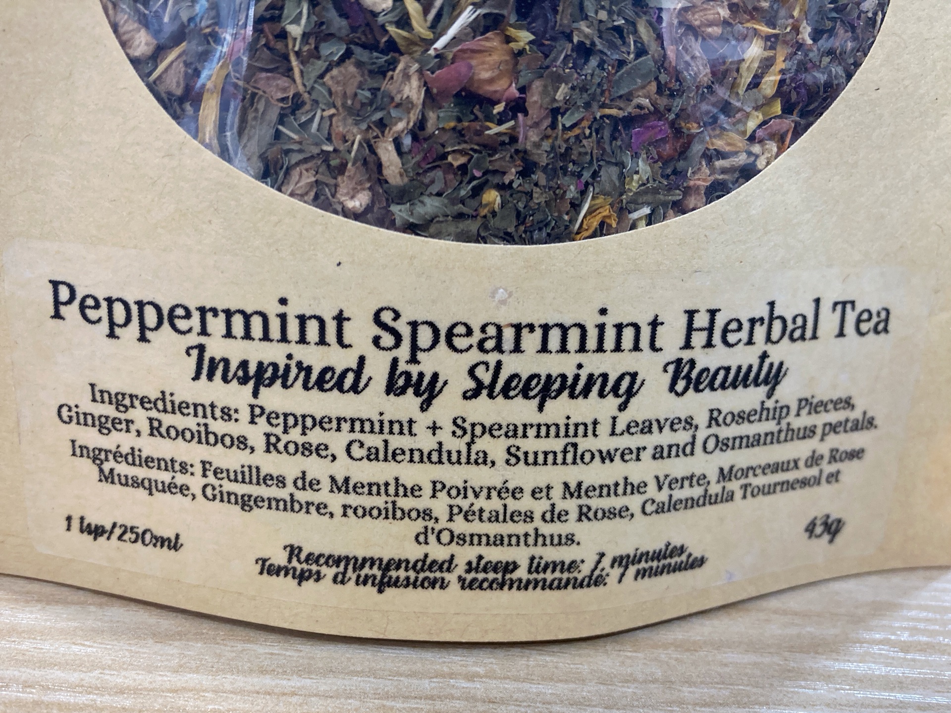 Peppermint Spearmint Blend Herbal Tea, Inspired by Sleeping Beauty. If you’ve been sleeping for 100 years you’re going to need a nice fresh tea to settle your tummy and get you moving for the day. This fresh peppermint and spearmint blend will invigorate you without the caffeine hit!